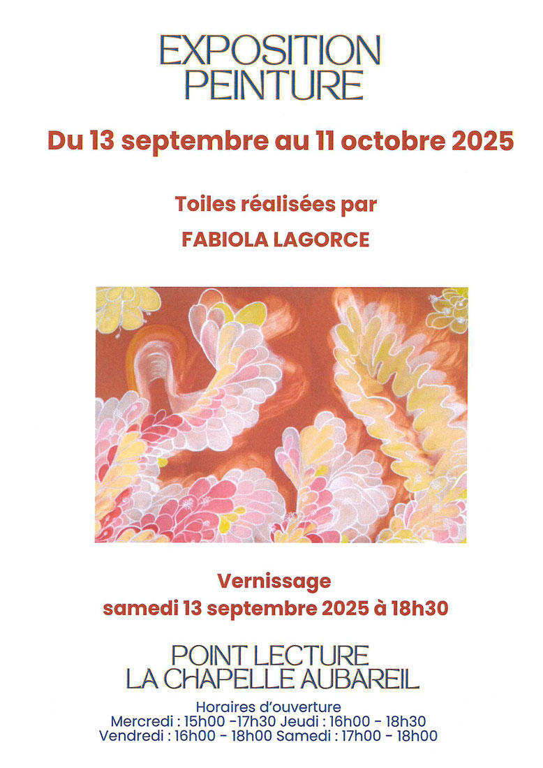 Du Lundi 15 SEPTEMBRE au Samedi 18 OCTOBRE 2025